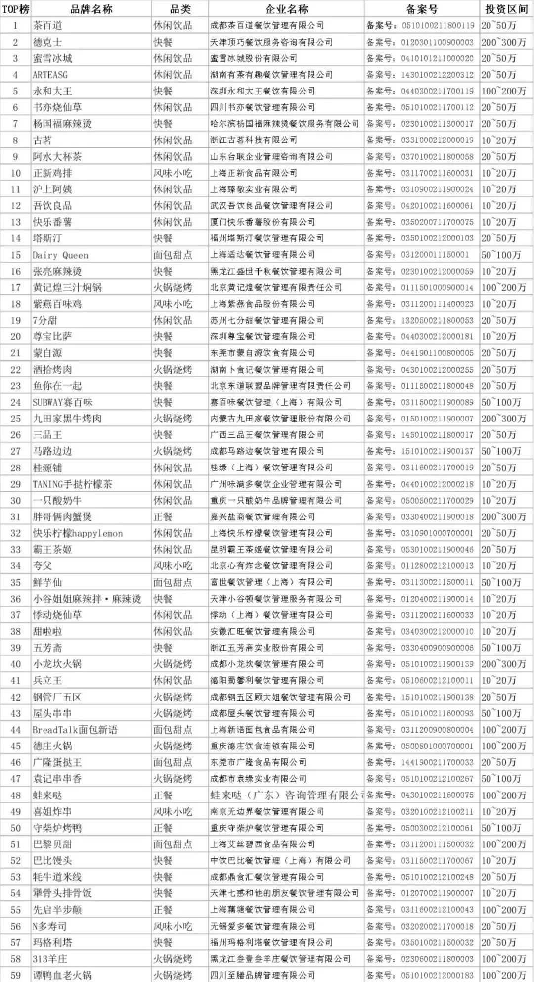 (以下是“2022中國餐飲加盟品牌TOP100”具體榜單)