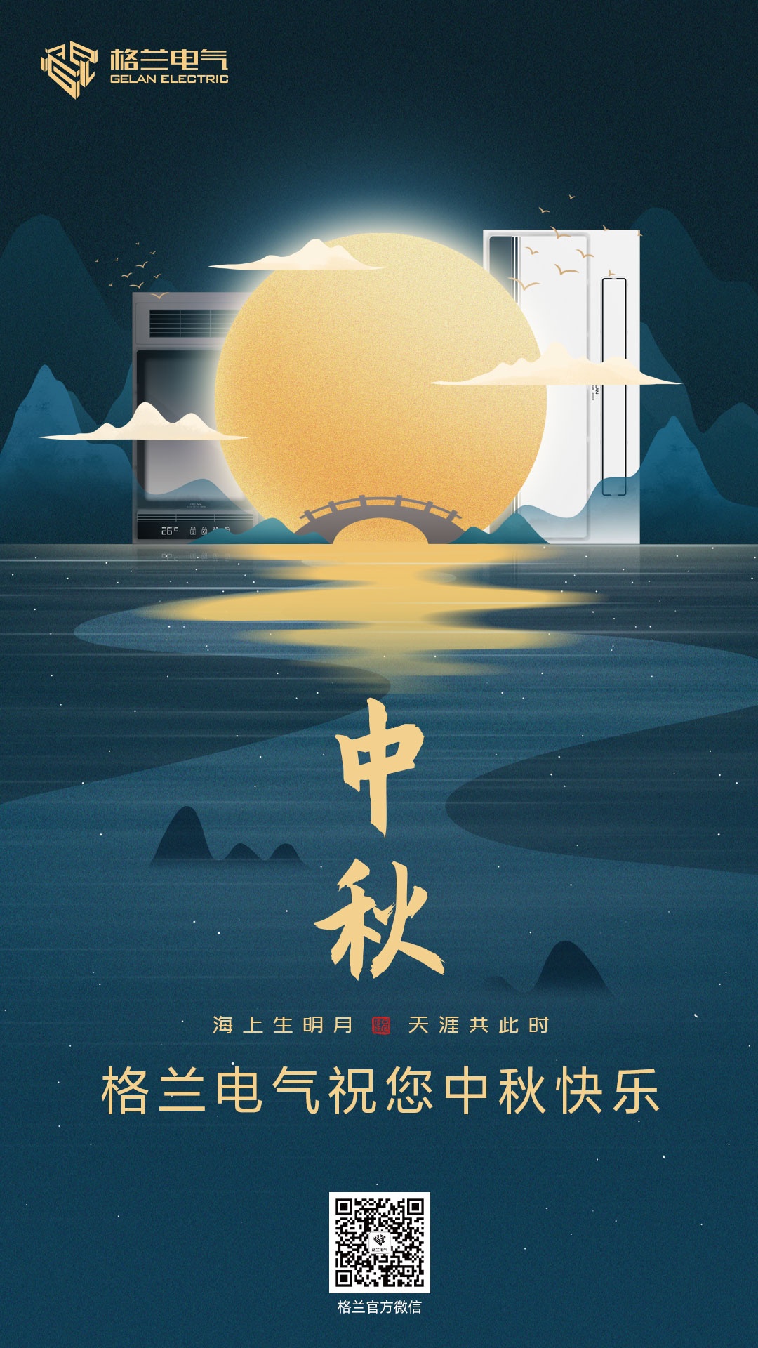值此中秋佳節之際,格蘭電氣衷心祝福大家:中秋快樂,闔家團圓,幸福安康,萬事如意!